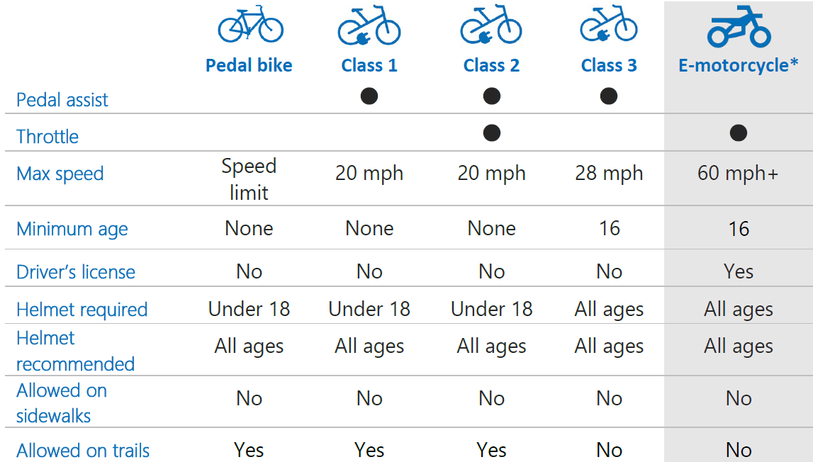 E-bikes can be a helpful way for students to get around, as long as riders are being safe and following specific rules of the road. In recent months, you may have noticed e-motorcycles on the road as well. E-bikes and e-motorcycles can look similar, but there are a few differences to help tell them apart.