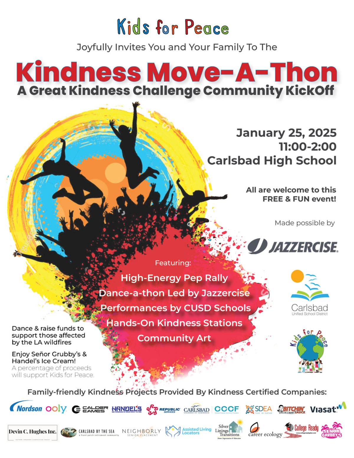 Saturday, January 25 Kids for Peace will host a community event at Carlsbad High School from 11:00-2:00. There will be fun activities and students from our school will be decorating a service vehicle.
